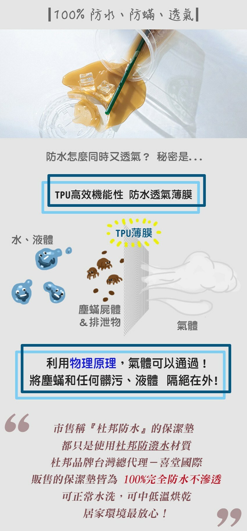 ・表面迅速吸收液體不滲透,保持床墊乾爽無味或泛黃