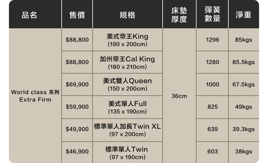 整張床皆為獨立彈簧配置,具優異的動態吸收效果,可有效