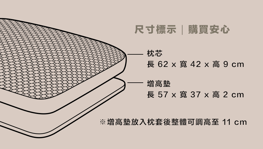 👉 增高墊可放入枕套,整體高度最高可達 11 公分