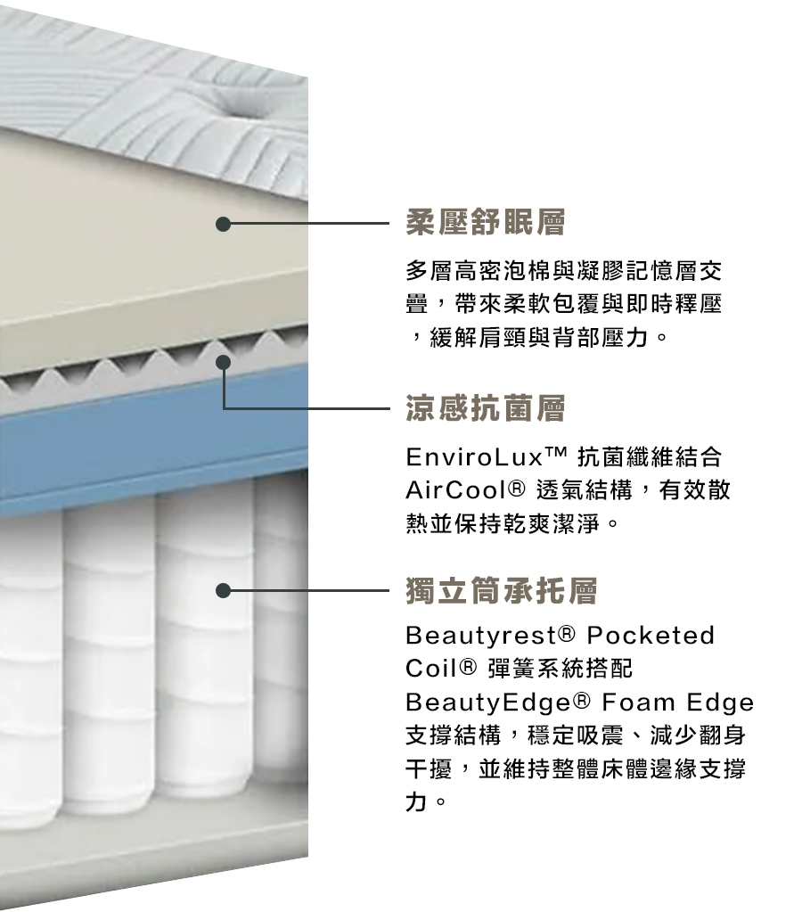 • Beautyrest® 獨立袋裝彈簧