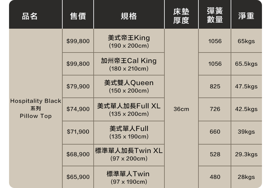 • 床墊高度36公分